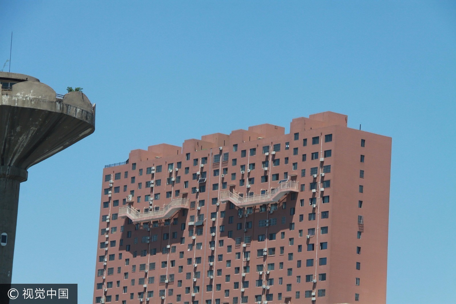 2017年7月10日,在山東濟(jì)南北園大街上,一幢大樓四個(gè)樓梯半懸在50米高的空中,令不少路人看到后直呼心驚膽顫,也不敢走這種樓梯。 2017年7月10日,在山東濟(jì)南北園大街上,一幢大樓