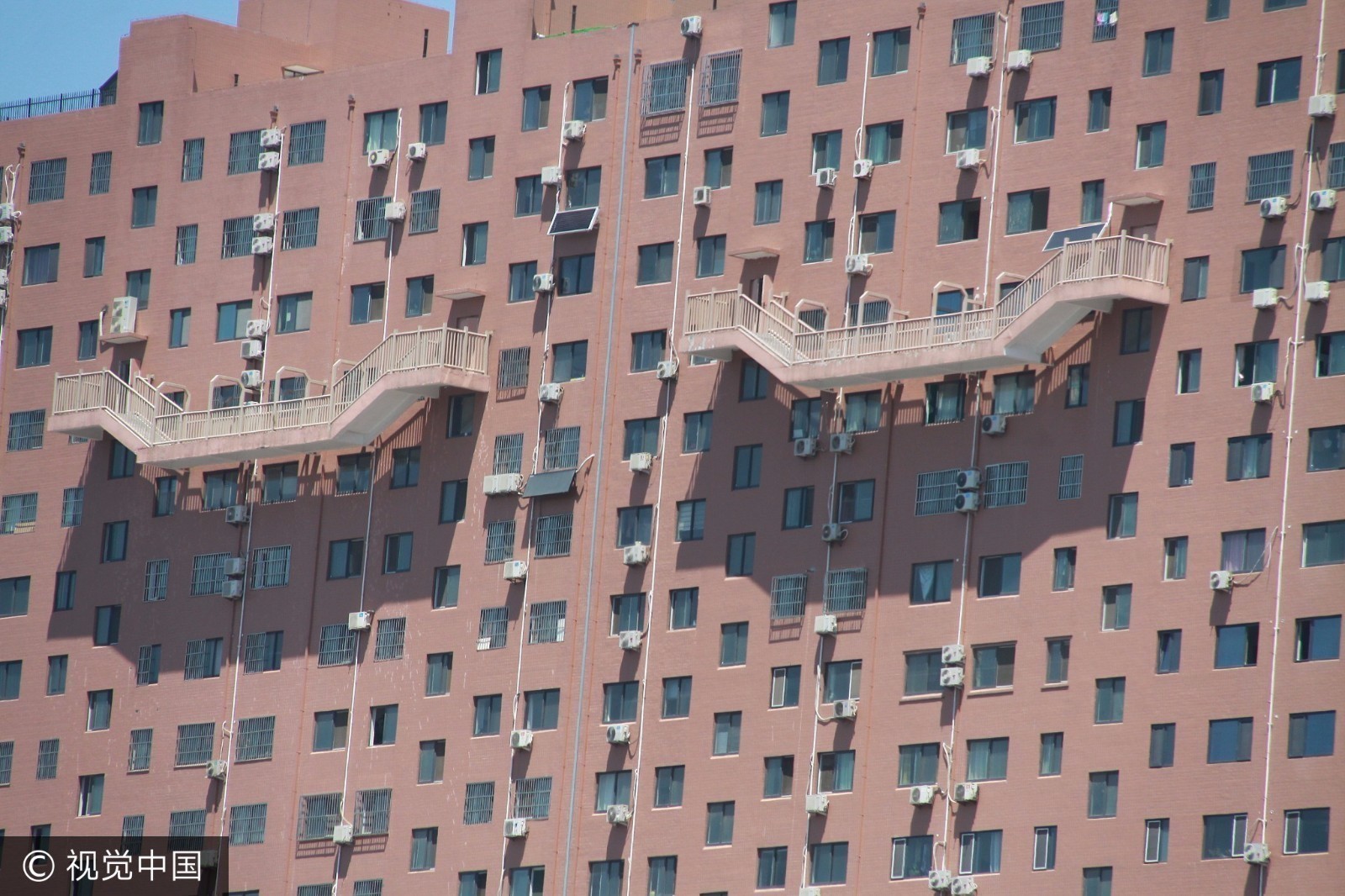 2017年7月10日,在山東濟(jì)南北園大街上,一幢大樓四個(gè)樓梯半懸在50米高的空中,令不少路人看到后直呼心驚膽顫,也不敢走這種樓梯。