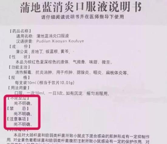 因?yàn)槊孕胖谐伤?ldquo;副作用小”,加上“口口相傳”,很多人并不會(huì)真正仔細(xì)的去看藥品說明書,就把蒲地藍(lán)當(dāng)成心目中的神藥。